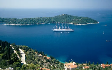 Vous êtes en Grèce centrale, sur la grande île d’Eubée. Au pied d’une montagne protectrice digne de l’Olympe, le Resort Club Med de Gregolimano se cache dans la pinède, bordé par un cap de sable blond. Au premier plan, des catamarans sont alignés sur le rivage.
