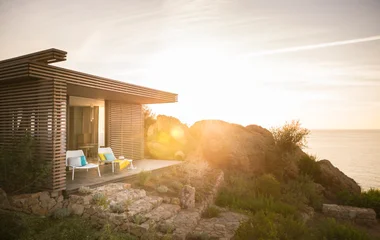 Derrière, on aperçoit les bungalows et les courts de tennis. Là, des choix divins et tout compris s’offrent à vous. Élancez-vous en ski nautique sur l’un des 4 pontons. Lâchez-prise dans un hamac au milieu des pins. Dégustez un cocktail de jus de fruits frais sur-mesure assis à la terrasse panoramique de l’Olea Gourmet Lounge. Attablez-vous sous la pergola du restaurant les Pléiades, entouré de buis et de fleurs sauvages.